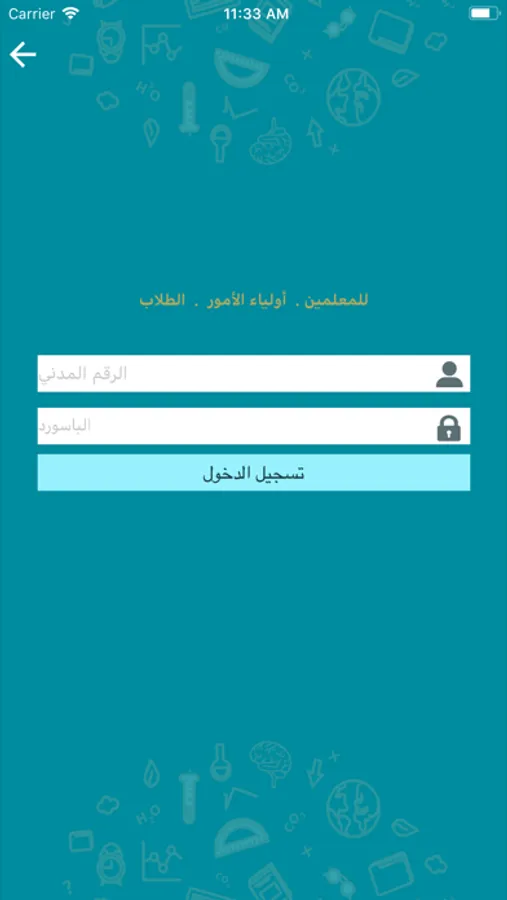 يمكنك الدخول بالرقم المدني للمعلم او الطالب