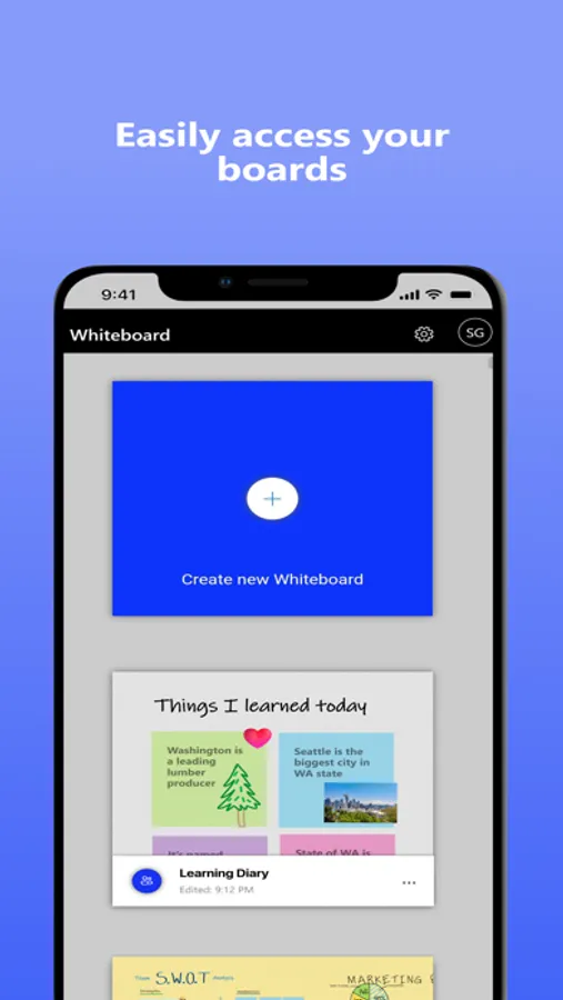 Forget having to take photos of your whiteboards, or marking them with “Do Not Erase.” With Microsoft Whiteboard, your brainstorming sessions are saved automatically to the Microsoft cloud, so you can pick up where you left off, whenever – and wherever – inspiration strikes next.
