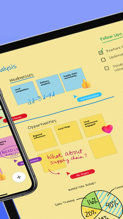 Microsoft Whiteboard provides an infinite canvas where imagination has room to grow: draw, type, add a sticky note or a notes grid, move them around – it’s all possible. The touch-first, pen-first interface frees your ideas from the keyboard, and the intelligent inking technology transforms your doodles into great-looking shapes and lines that can be copied, pasted and combined with other objects. Moreover, you can also, ink on your sticky notes & text boxes and magically see the ink get converted to text using Apple Scribble functionality (on iPads with Apple Pencil).
