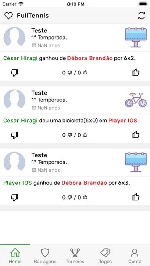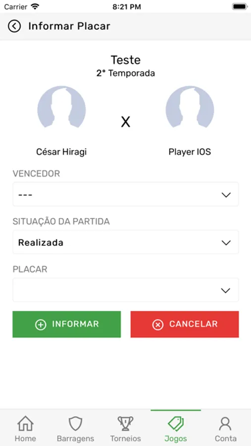 2.5 - Lançamento de resultados pelos jogadores e administradores.