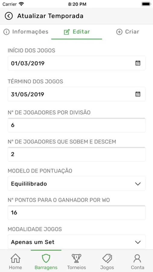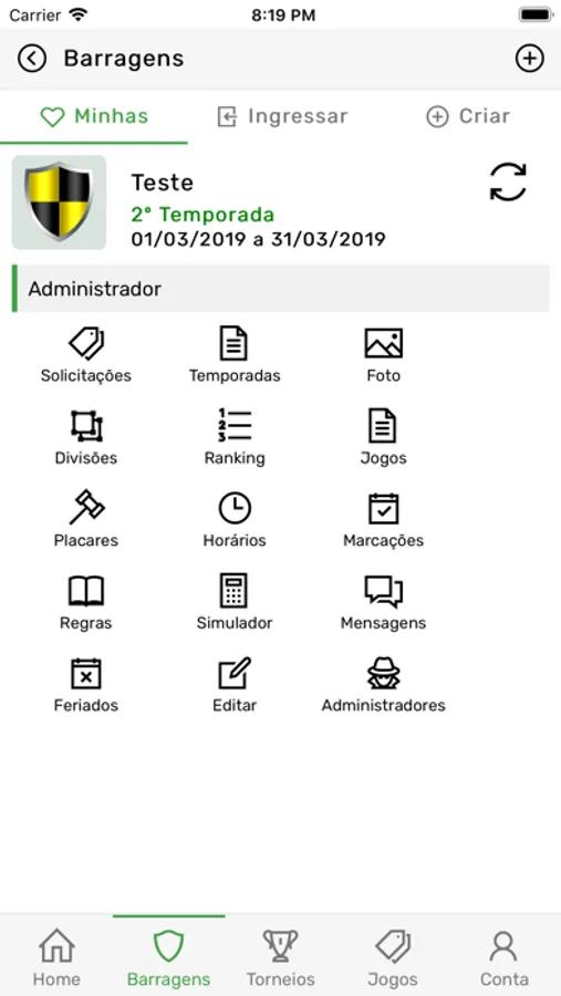Aplicativo completo para gerenciamento de barragens, rankings e torneios de tênis, possui as seguintes funcionalidades: