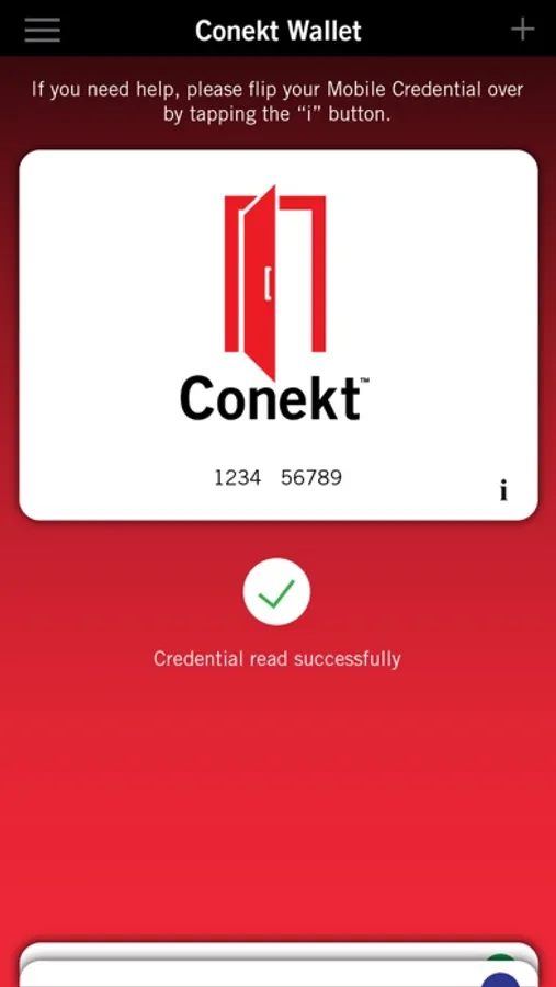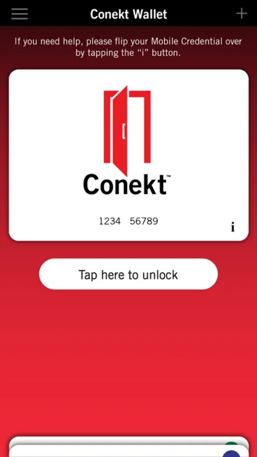 The Conekt Wallet App is designed to operate on an Apple iPhone, and in conjunction with electronic access control systems making use of Conekt mobile-ready readers. It allows a system user to download, manage and hold their mobile credentials in a simplified manner. With the app enabled and valid mobile credentials loaded, an iPhone user may enter into any authorized access system.