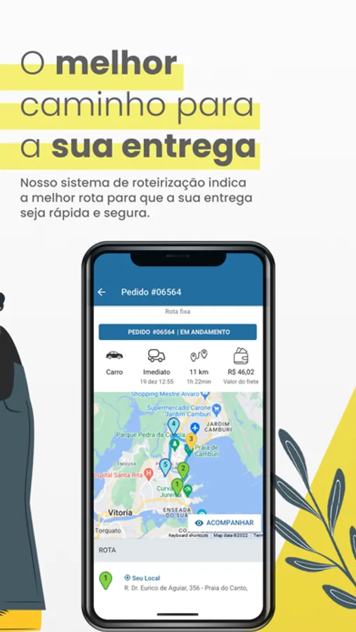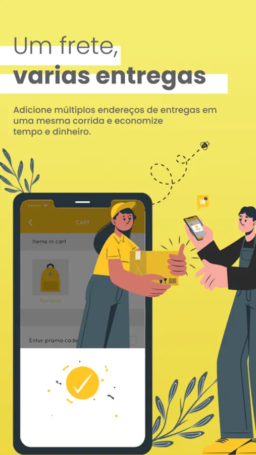 Você cria seus pedidos escolhendo o veículo ideal para o seu produto; escolhe o horário; monta sua rota de entregas e o preço é atualizado a medida que você cria seu trajeto, antes de confirmar seu pedido.