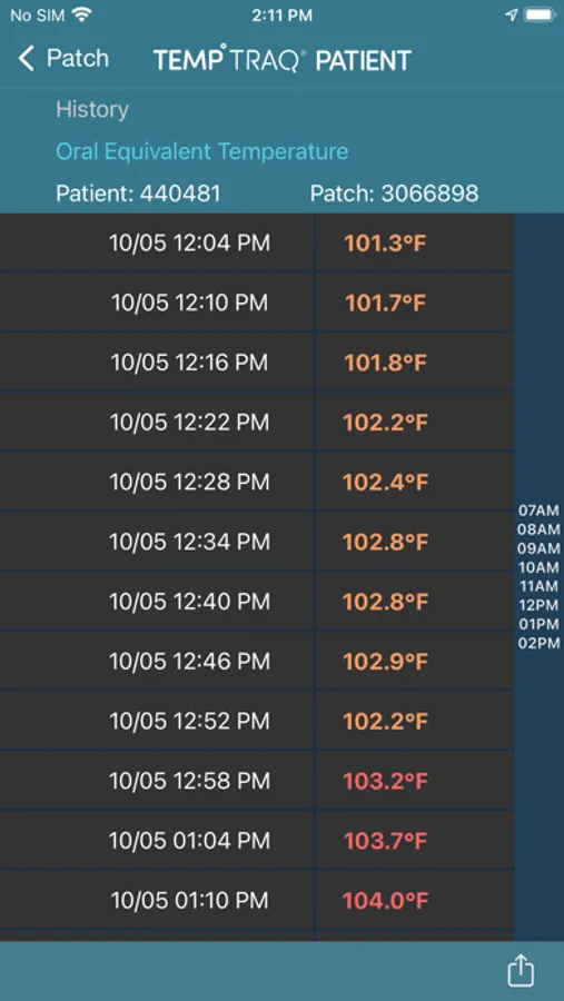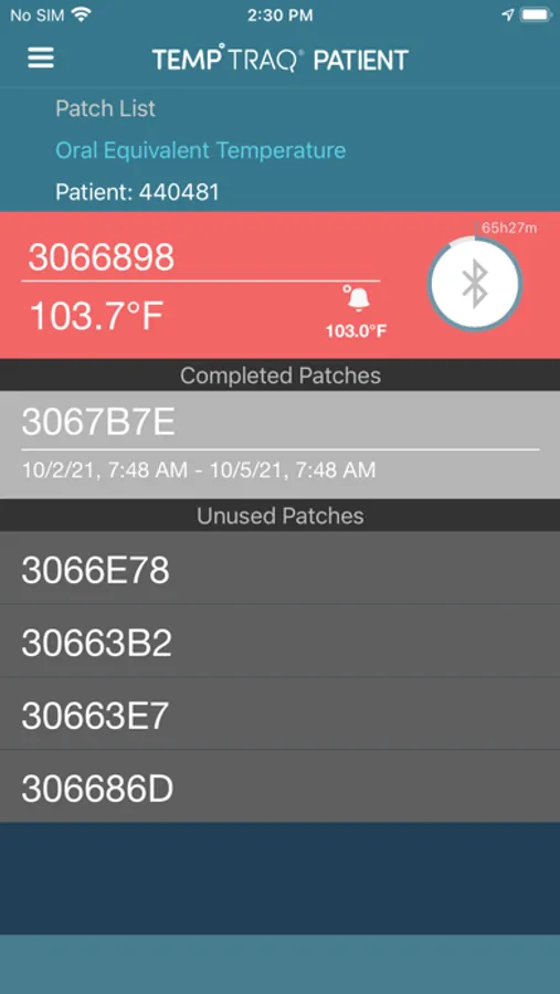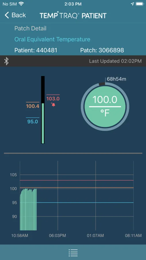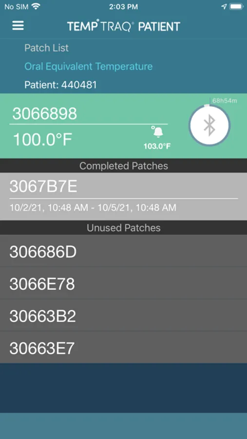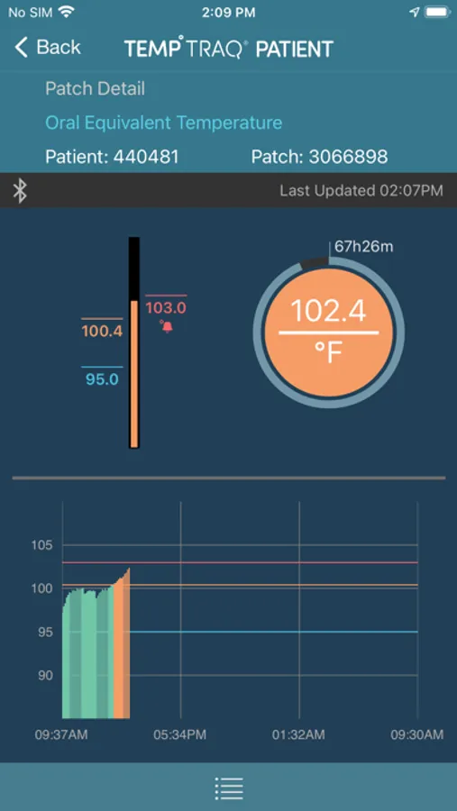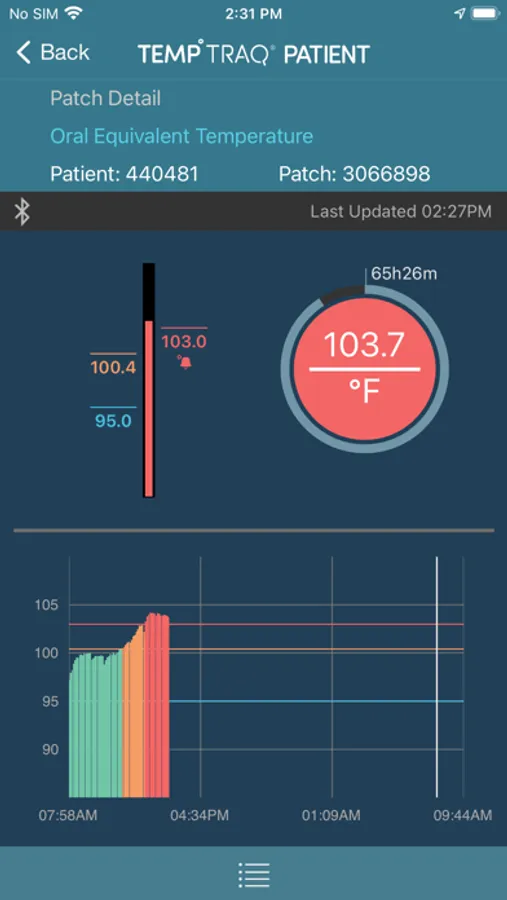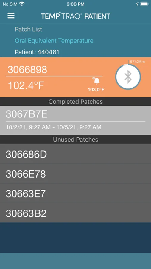 The TempTraq Patient application provides the patient monitoring functionality, receiving temperature data broadcast from the TempTraq patch and transmitting the data to the TempTraq Connect cloud service enabling the data to be monitored by clinicians.