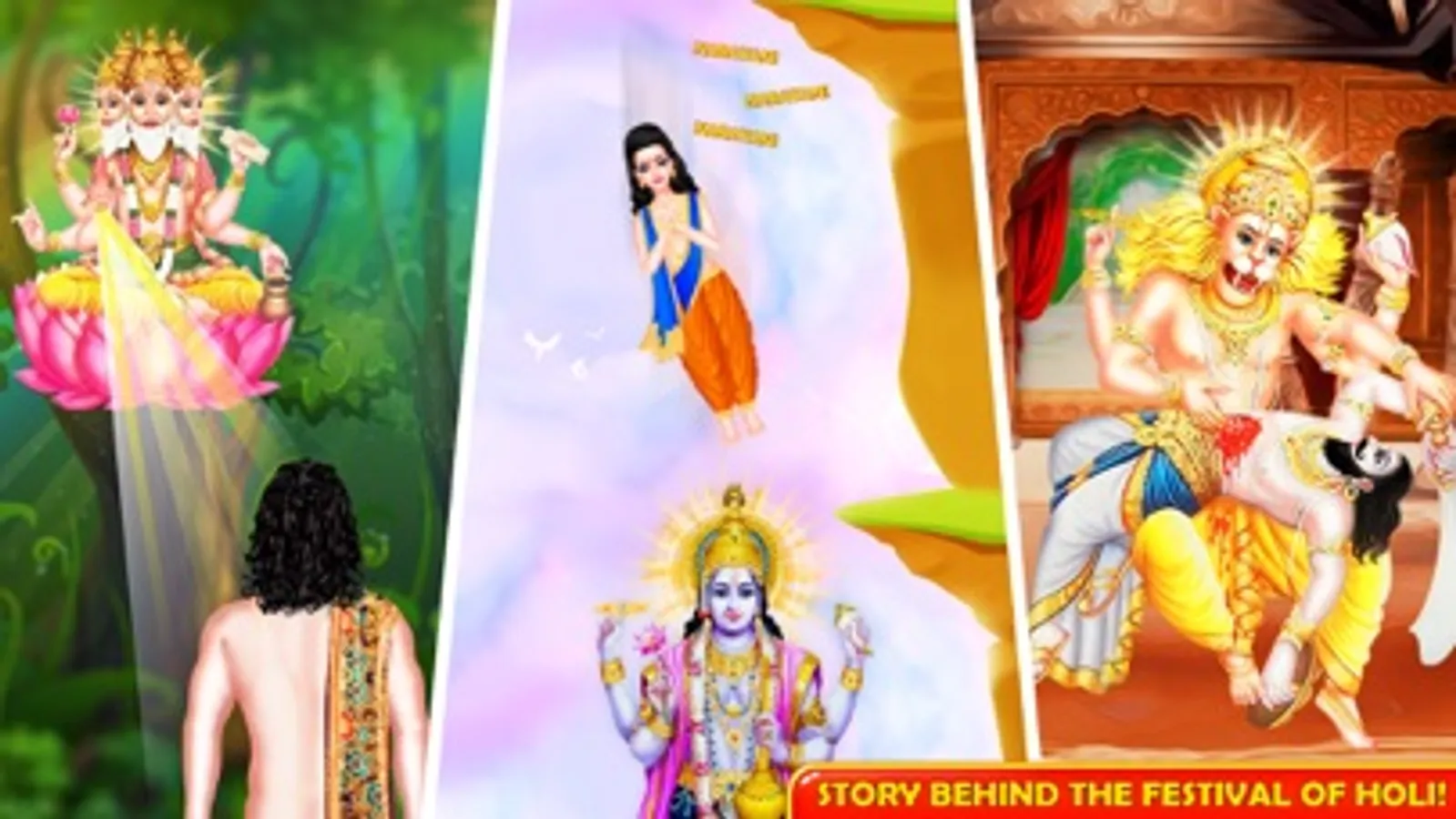 Listen to the auspicious story of holi and help gopi doll save bhakt prahlad from the evil acts of hiranyakashyapu.