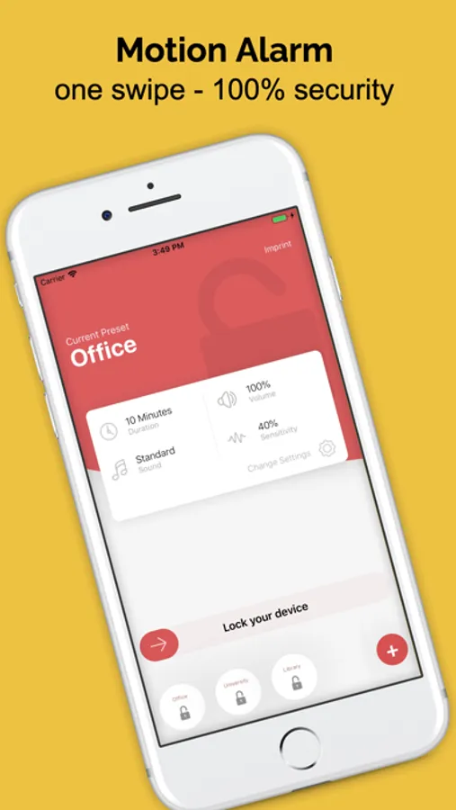 We developed a fully reliable easy to reach motion detection solution for iPad and iPhone. Stay secure during trip or at school, restaurant, bars,... The configuration of sound, sensitivity, alarm type helps to take care on every different situation where you want to protect your device - DevPro!