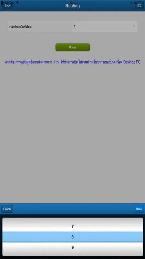-Routing การดูข้อมูลเส้นทางการเดินทางของยานพาหนะตามช่วงเวลาที่เลือกไว้