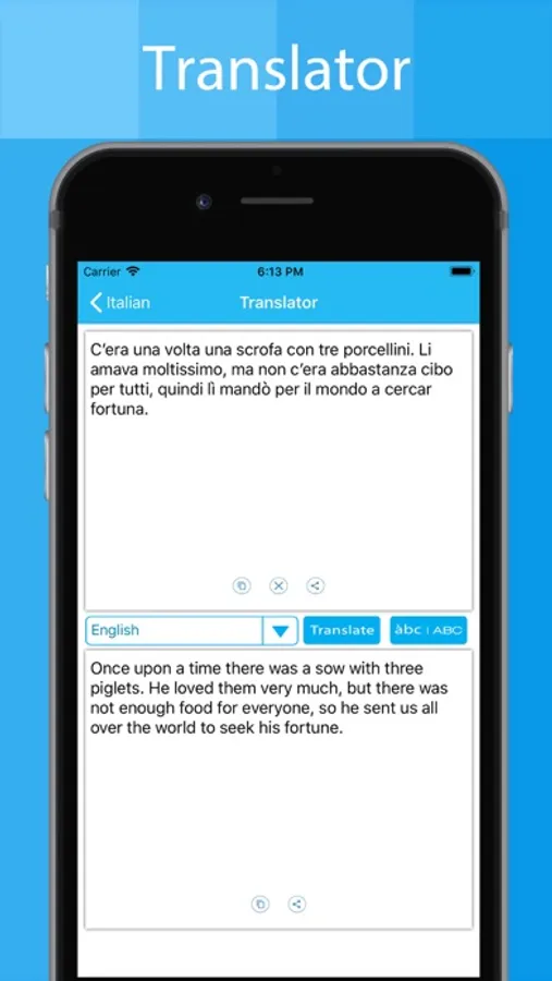 The most exciting feature of this application is you can translate Italian word to any other language like English, Marathi, Italian, Italian and all other indian languages as well as all international languages like French, Spanish, Greek, Turkish, Sweedish etc....