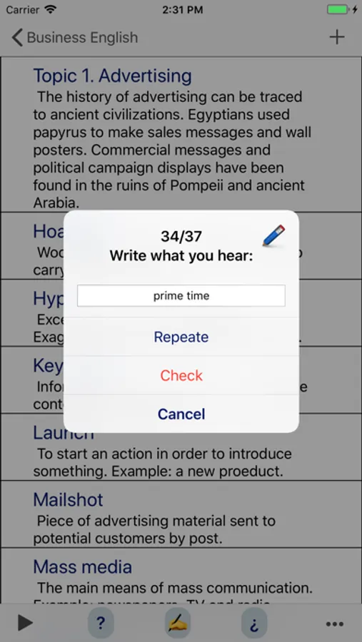 With "Business English Listening" app you can read and write, listen, pass tests and learn faster, in result you will get fun and obtain more knowledge!