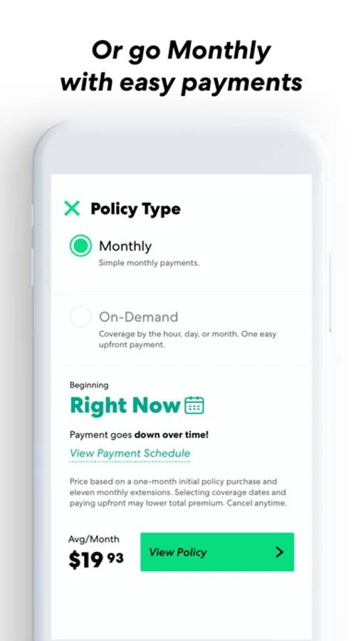 Policies in minutes by the job, month, or year