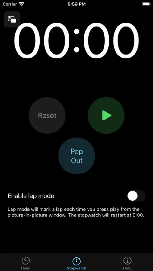 Pop Out Timer uses picture-in-picture to provide an always on-screen, floating timer or stopwatch. Great for presentations, workouts, cooking or anything that needs to be timed while using a full screen app.