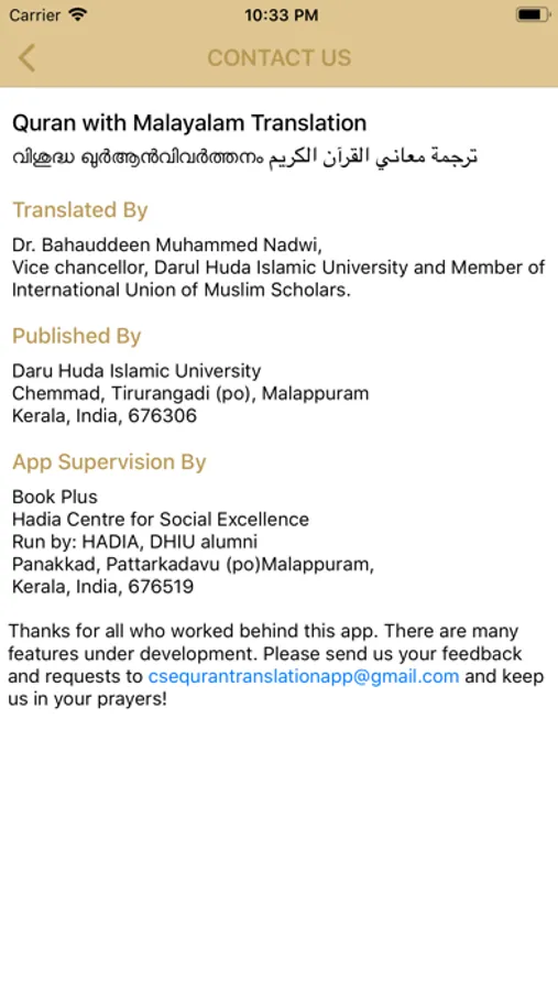 Quran with Malayalam Translation is a free application of the Quran Malayalam Translation (ترجمة معاني القرآن الكريم) by Dr. Bahauddeen Muhammed Nadwi published by Darul Huda Islamic University, App supervision by: HADIA Centre for Social Excellence, DHIU alumni association.