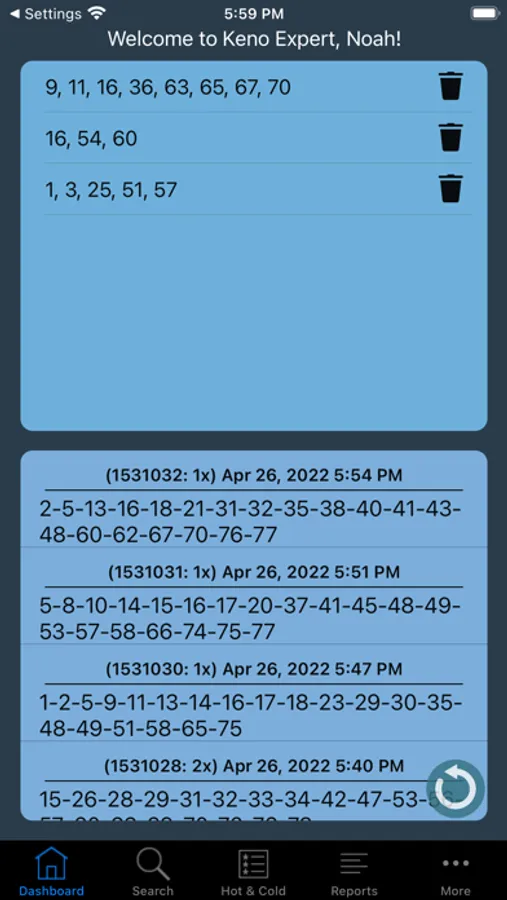 This application will give you all sorts of information around your favorite numbers and reports on what numbers are hot and what numbers are cold. This app is real time and up to date and can provide you the information you need when you are playing keno at your favorite location. Keno Expert currently supports Georgia, Maryland, Massachusetts, Ohio, Oregon, Pennsylvania, and Tennessee.