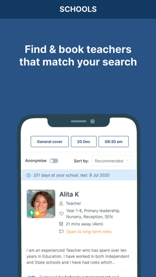 “Zen Educate has provided us with a highly professional service, their platform is easy to navigate, and their phone app means that a last-minute booking is easy to make. They've saved us money, without sacrificing the quality of staff we expect." — Yvonne, Exec Director