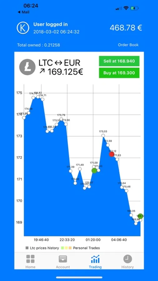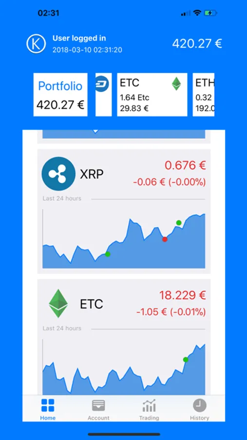 + Real time overview of all cryptocurrency with real time Charts inluding personal trades