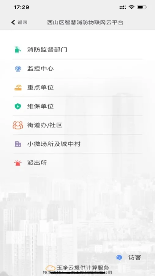 云南智慧消防物联网云平台根据国家相关规范及标准,由玉净科技进行技术研发,针对消防监管及维保的特点,结合现阶段火灾报警系统的技术现状,采用“感、传、知、用”等物联网技术手段,综合利用无线传感、云计算、大数据、三维全景等技术,通过互联网、NB-IoT、4G、5G等通讯网络,对消防设施、设备、人员等状态进行智能化感知、识别、定位及跟踪,实现动态实时的信息处理和分析,为防火监督管理和灭火救援提供全方位信息支撑,全面提高了社会化消防监管水平。