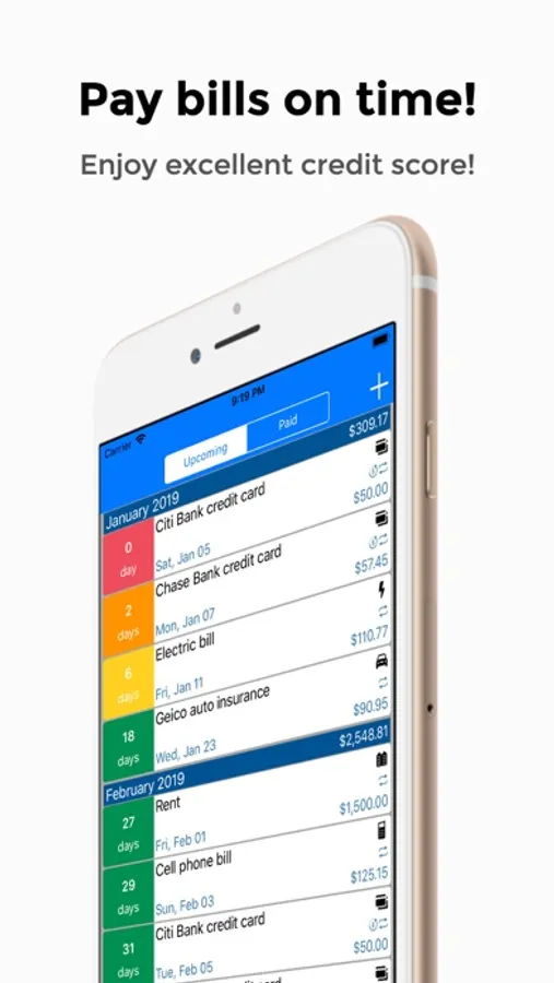 With Bills Organizer & Reminder you can say NO to late payment fees, penalties and low credit score! The main idea of the app is to give you tool that lets you track and manage all your bills in one place. Bills Organizer & Reminder has dashboard-style views that allow you quickly see approaching bills, and it sends payment reminders for upcoming bills before due date. Never miss bill payment and always pay all your bills on time!