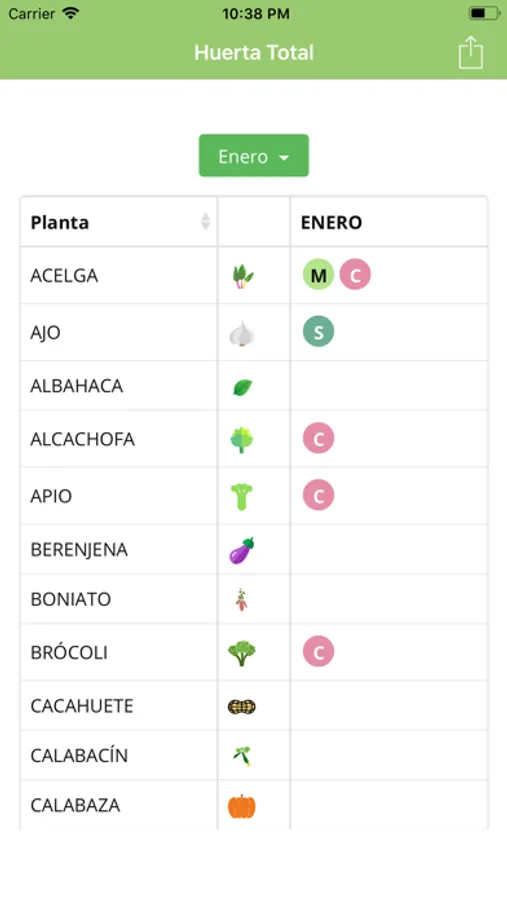 Es una tabla para consultar en cualquier momento, y que no se nos olvide cuando tenemos que poner los semilleros, trasplantar, sembrar o cosechar
