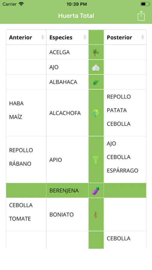 Es una tabla que nos permite consultar qué plantas es adecuado plantar después de otras en la misma superficie