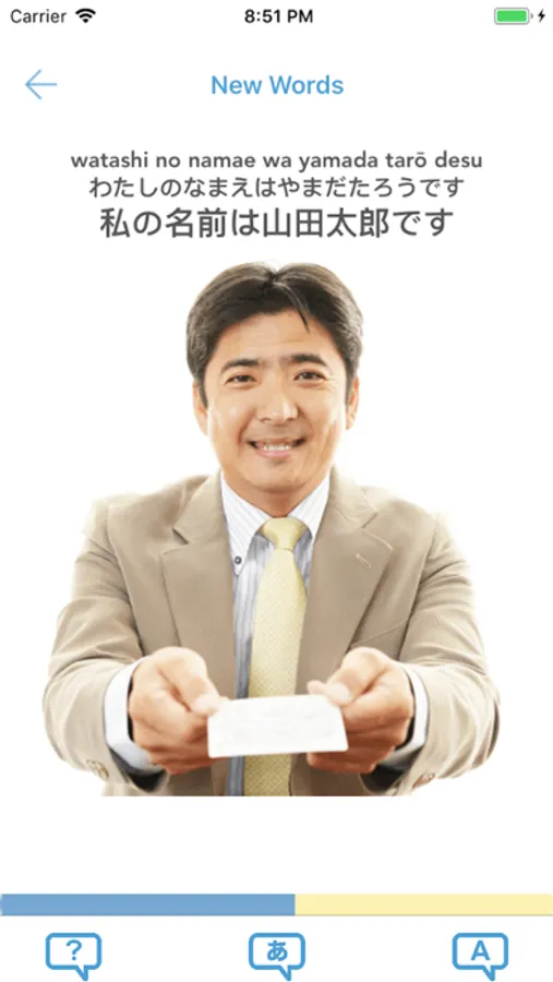 New contents in each lesson is introduced via section “New Words”. After that you can strengthen your language skills via reading and listening challenge sections of each class.