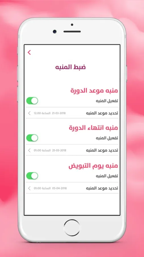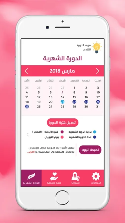 - تنبيهات على اوقات حدوث الدورة الشهرية أولاً بأول