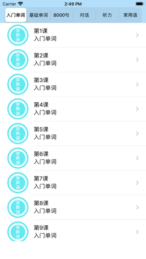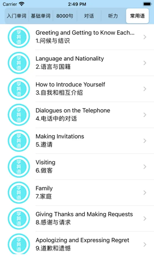 学习英语,是一款学英语必备软件,内容涵盖,入门单词,常用单词,口语对话,英语口语,英语口语8000句,英语单词,。标准美式英语领读,跟读,复读,语句讲解,哪里不会点哪里。所有内容免费下载。