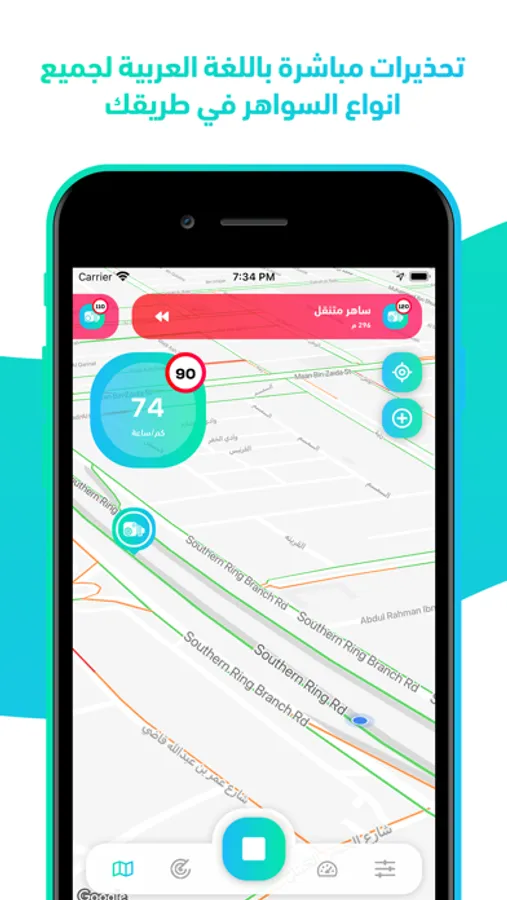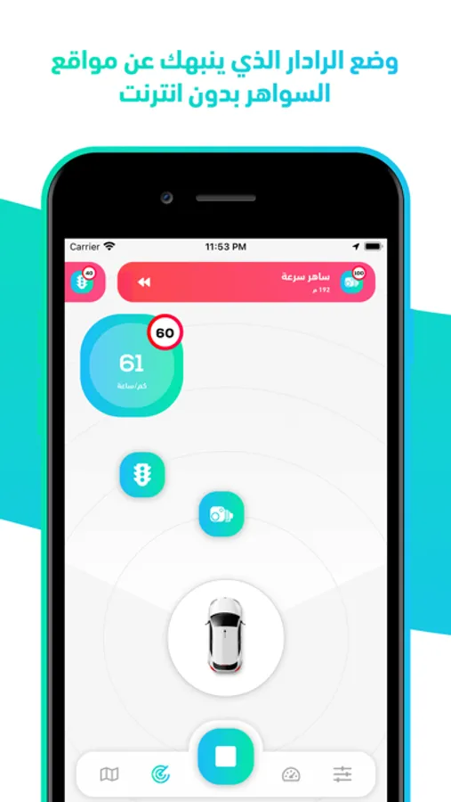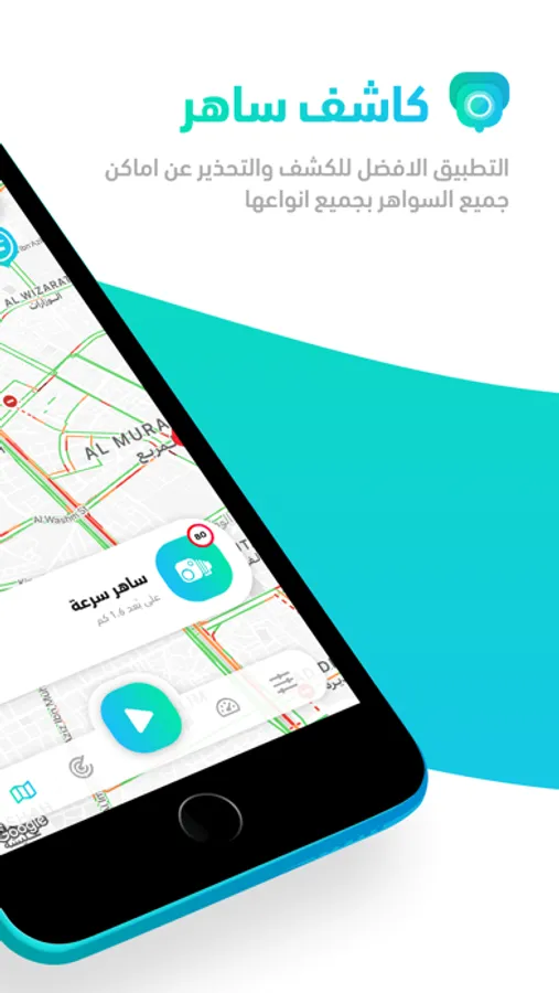 • كشف جميع سواهر السرعة والسواهر الثابتة وسواهر الإشارات في جميع مدن المملكة العربية السعودية و الإمارات العربية المتحدة و البحرين و قطر و الكويت و عمان و مصر و العراق وجميع الطرق السريعة فيهم.