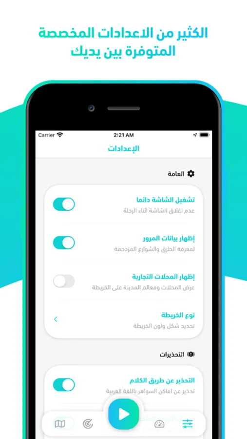 • وضع القيادة الليلية لسهولة عمل التطبيق في الاوقات المتأخره.
