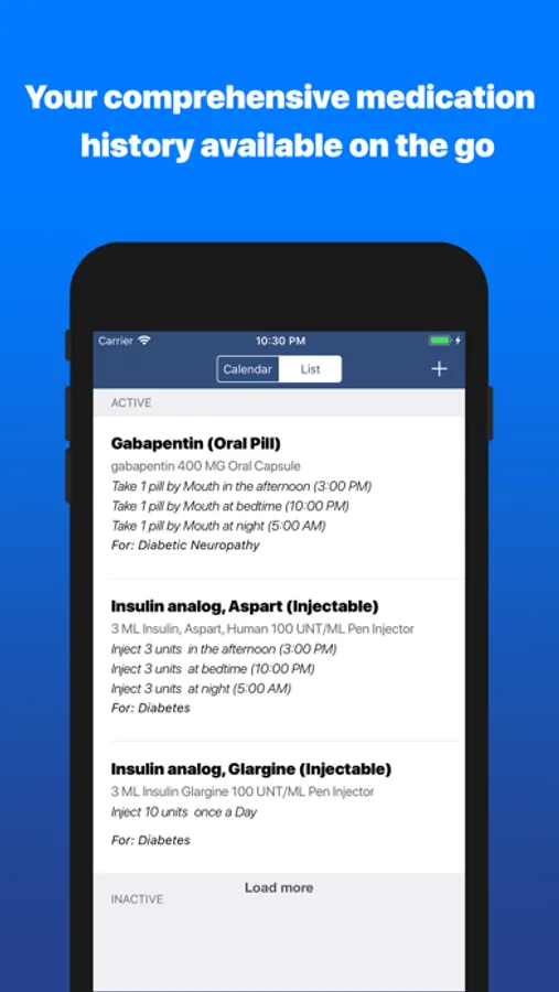 Take a look at some of the screens and features you'll see when using the MedManage app. This includes a medication list, calendar, and digital log you can access on the go.