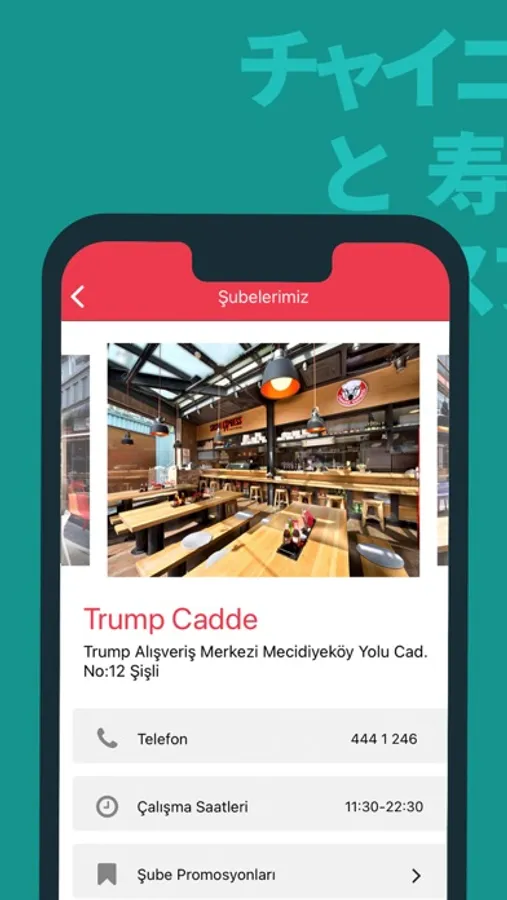 İstanbul’da Bağdat Caddesi, Ortaköy, Moda, Bakırköy Carousel, Şişhane, Kurtköy, Trump Cadde, Kozzy Avm, Altunizade, Ataşehir, Etiler, Ümraniye, Maslak, Kavacık, Çekmeköy, Kartal, Zekeriyaköy, Zeytinburnu, İstinye, Beylikdüzü, Acıbadem, Sancaktepe; Ankara’da Çayyolu ve Beysukent; Bursa Nilüfer, İzmit Yahyakaptan, Sakarya Adapazarı, Eskişehir ve Antalya Alanya olmak üzere toplam 29 noktada hizmet veren Chinese & Sushi Express, Çin ve Japon mutfağının en gözde lezzetlerini sizlerle buluşturuyor.
