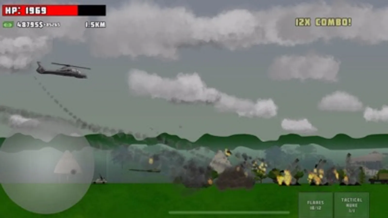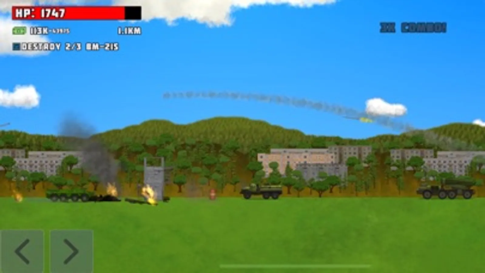 Destroy buildings, terrain and enemies using machine guns, artillery, autocannon, cannon, bombs, rockets and nuclear weapons.