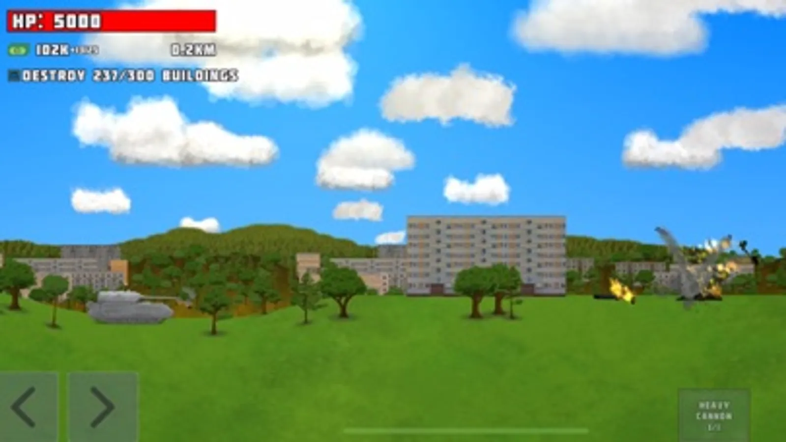 **Buildings destruction - shoot your rockets at different buildings and watch them collapse.