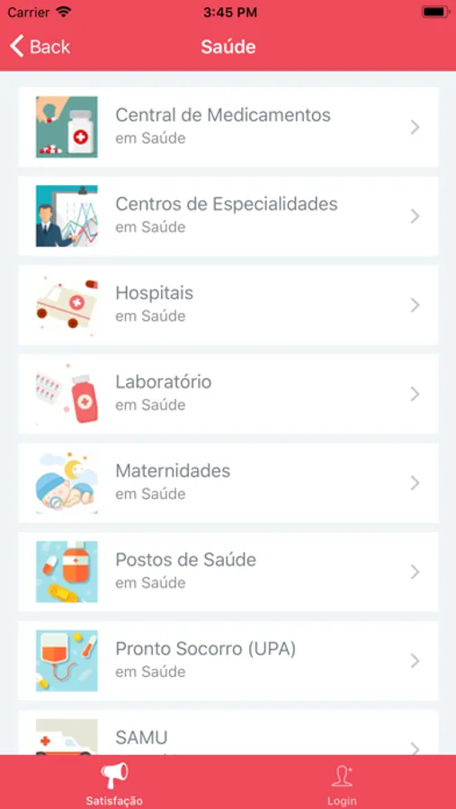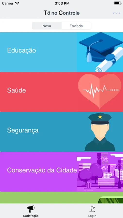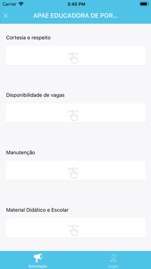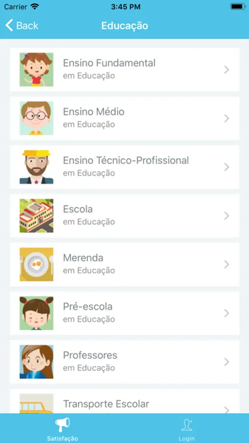 • Categoria: Na área Educação, por exemplo, a manifestação de satisfação poderá ser realizada respectivamente por meio da seleção de uma categoria: Ensino Fundamental, Ensino Médio, Creche, entre outras; além de selecionar a unidade de ensino. Nas áreas sem vínculos a unidades, deverá ser selecionado o bairro em que os serviços são prestados.