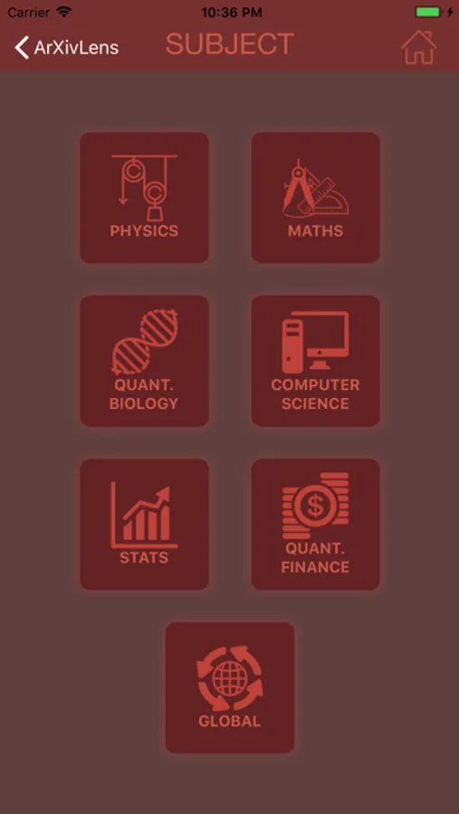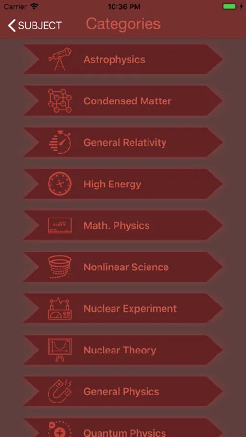 The app inludes all the subjects and categories you find in ArXiv.
