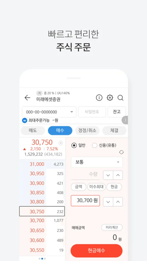 - 일반주문, 호가주문 등 실제 투자와 동일한 다양한 주문화면 이용 가능