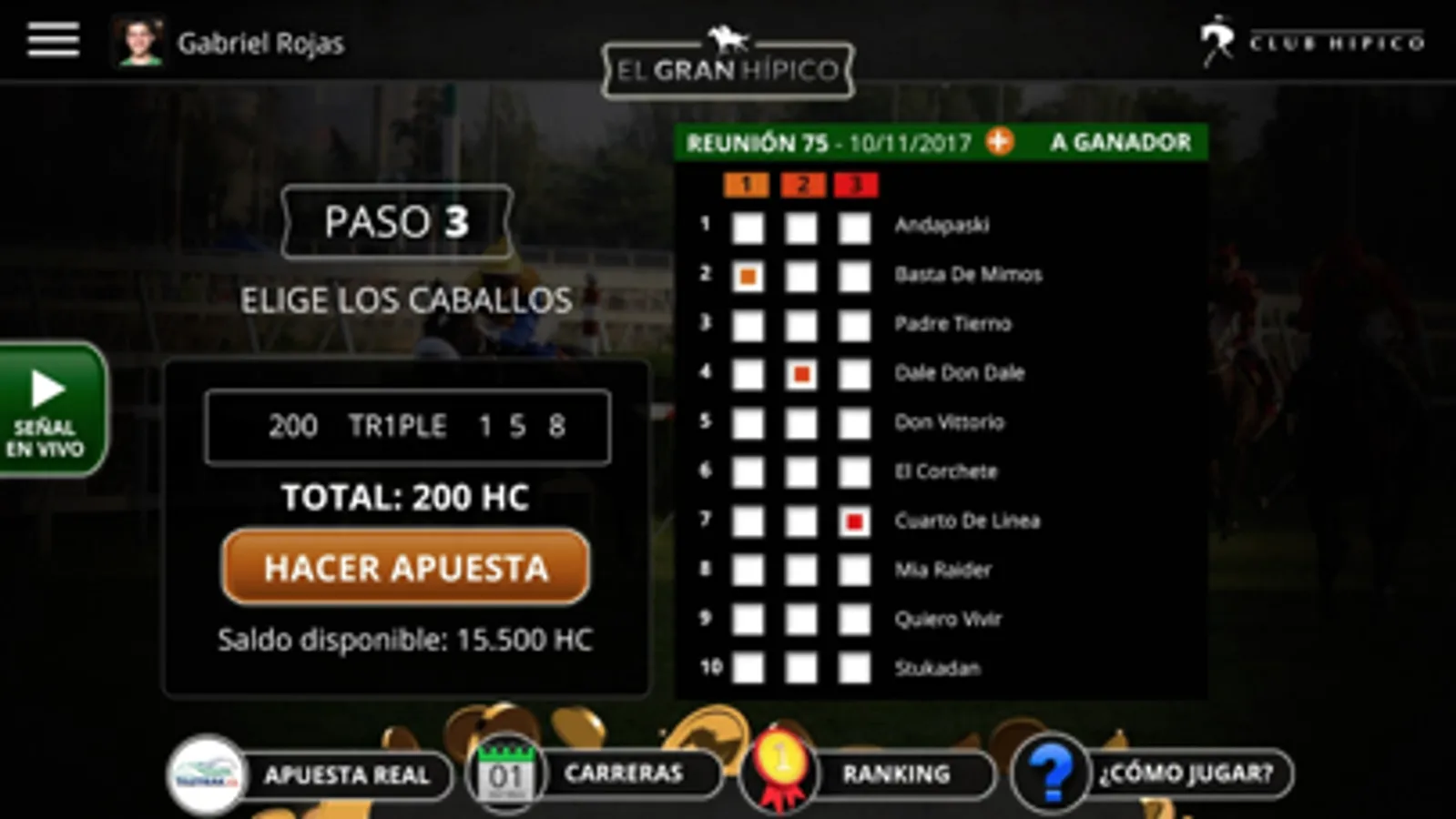 Jugar, acumular y apostar con dinero ficticio a las carreras de caballos del Club Hípico de Santiago.