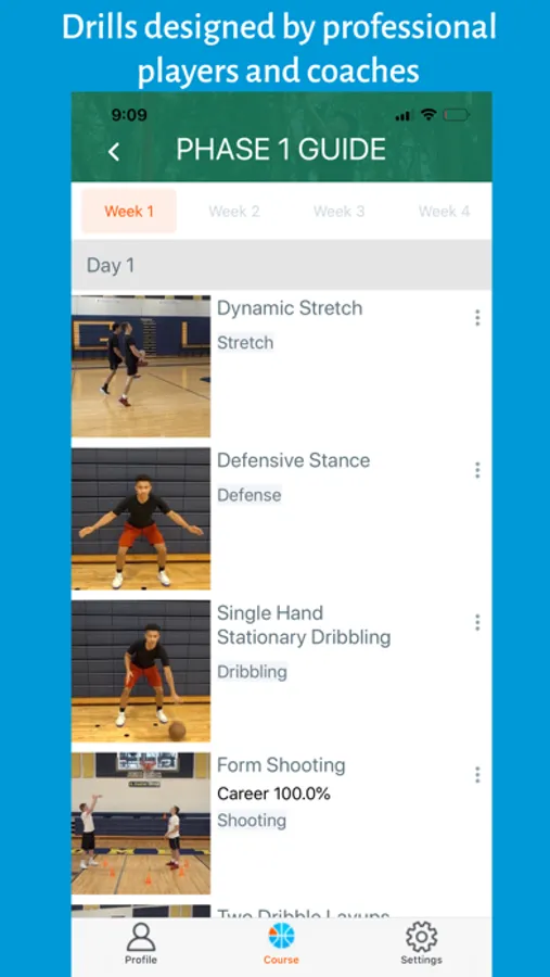 1) we help student athletes of all ages with structured workouts to improve their basketball skill level and also built in tools to develop healthy habits like accountability and perseverance.