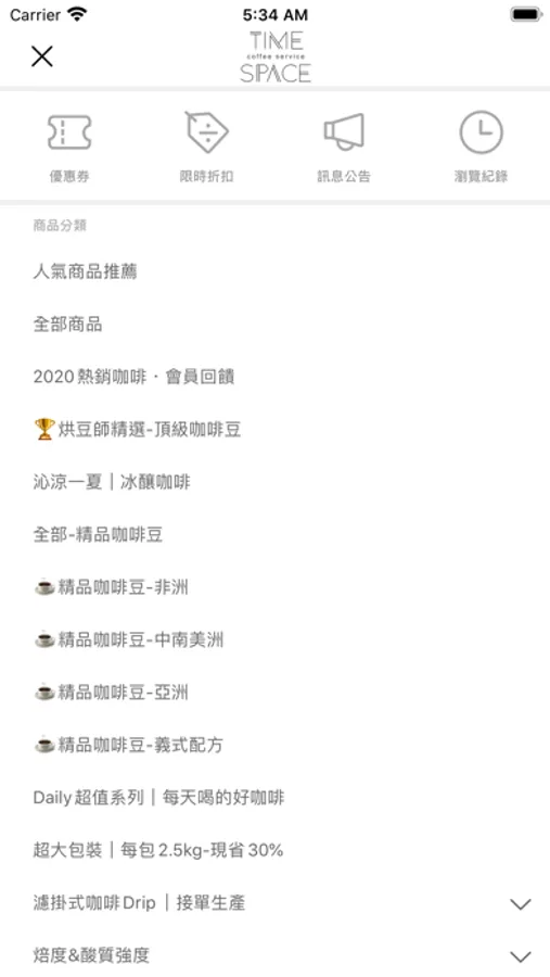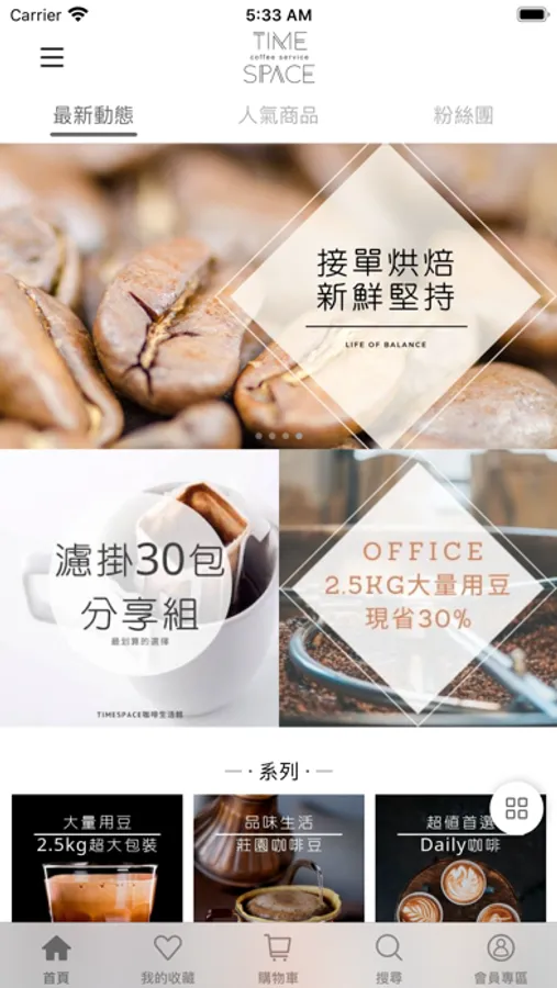 還在苦惱不知道在哪裡找到好咖啡嗎?快下載 “TimeSpace咖啡生活館”專屬App,讓您用手機就可以隨時找到您的美好咖啡,在TimeSpace咖啡生活館選購我們團隊為您把關的精品咖啡,讓您在這可以找到台灣各地咖啡館品牌、喝咖啡不受限。並提供最完整的開箱杯測報告,提供給您不同杯測師的評價報告、咖啡廳介紹、咖啡風味等,幫助您找到屬於您的美好咖啡。「TimeSpace咖啡生活館」不定時推出限定優惠,APP 會自動推播訊息,讓您不再錯過任何好康活動,無論您是在台灣何處,都能在這裡找到專屬您的美好咖啡釋放您的味蕾極限。