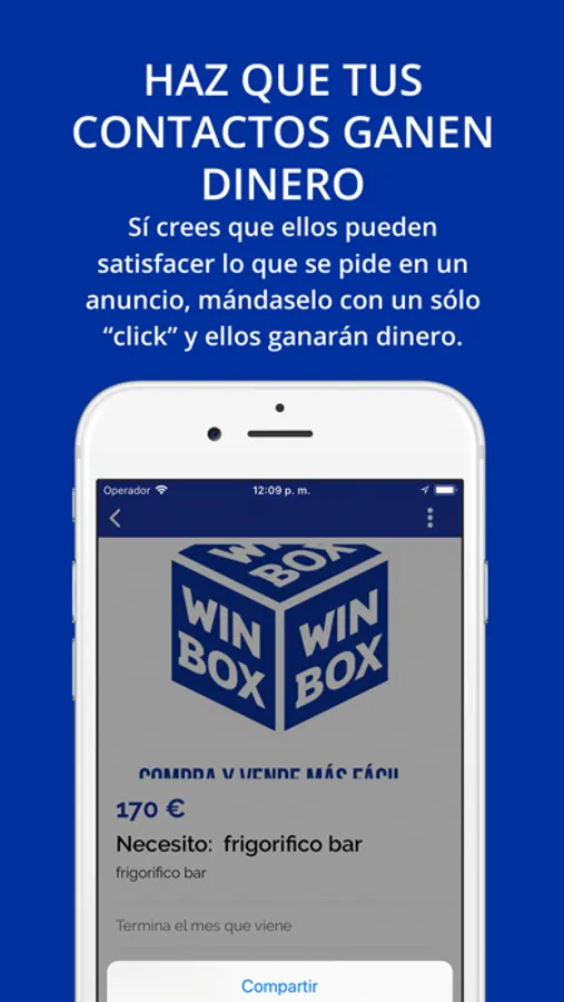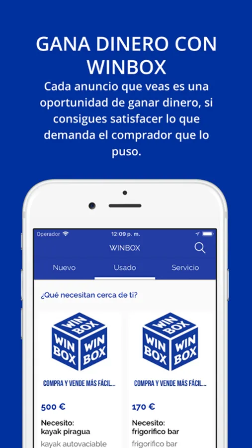 WINBOX ES UNA APP PARA COMPRAR Y VENDER MÁS FÁCIL, dónde en sólo medio minuto, puedes poner un anuncio con lo que necesitas, si eres el comprador, o puedes acceder a clientes con una "clara intención de compra", si eres el vendedor.