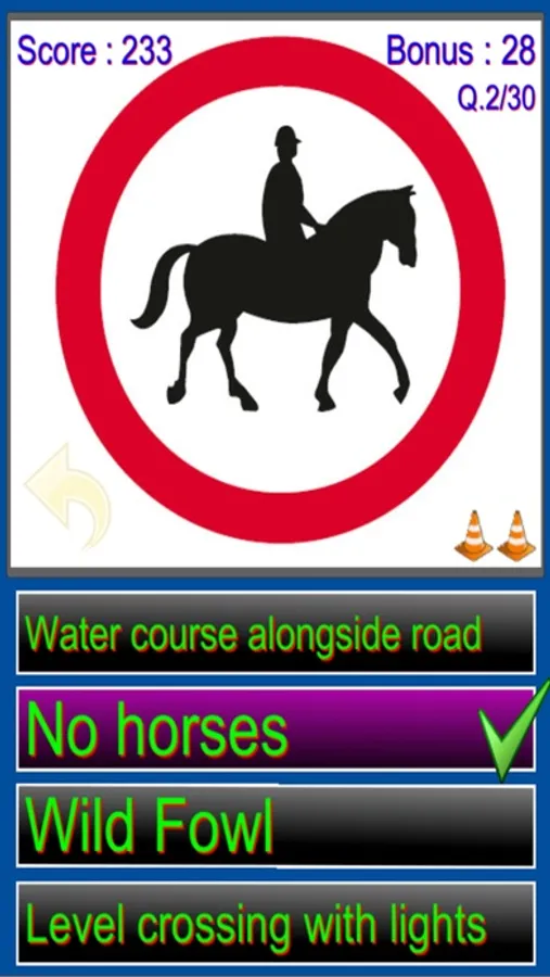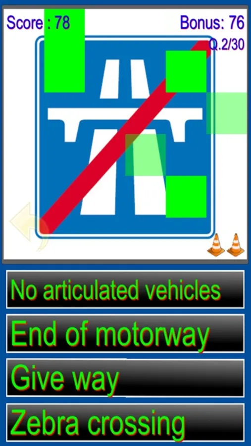 The game displays traffic signs from Great Britain, all you have to do is to select the correct choice from the four options displayed. It's very easy to play and makes learning road signs much more fun then staring at dusty old pages in the highway code.