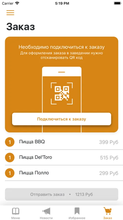 Официант при этом получает уведомление и выносит заказ по готовности.