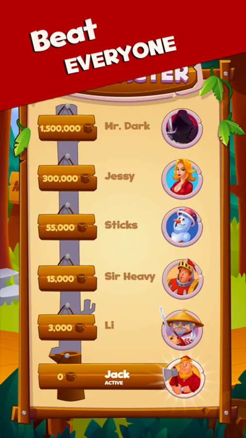 Chop and gather logs, unlock different lumberjacks and environments. Help Sticks, Sir Heavy, and Mr. Dark top the leaderboards.