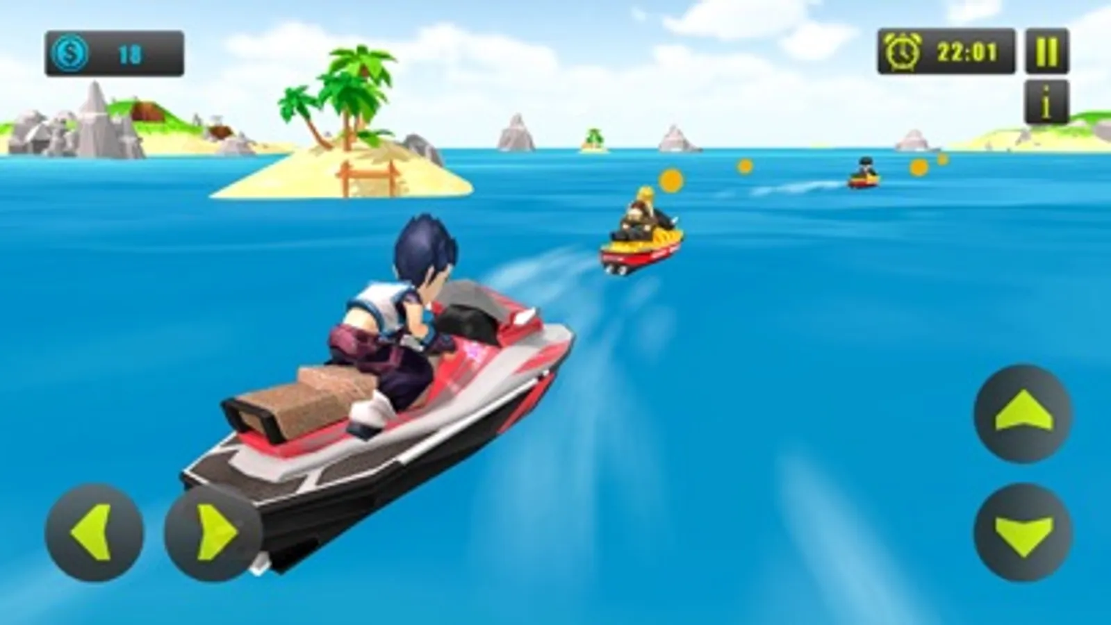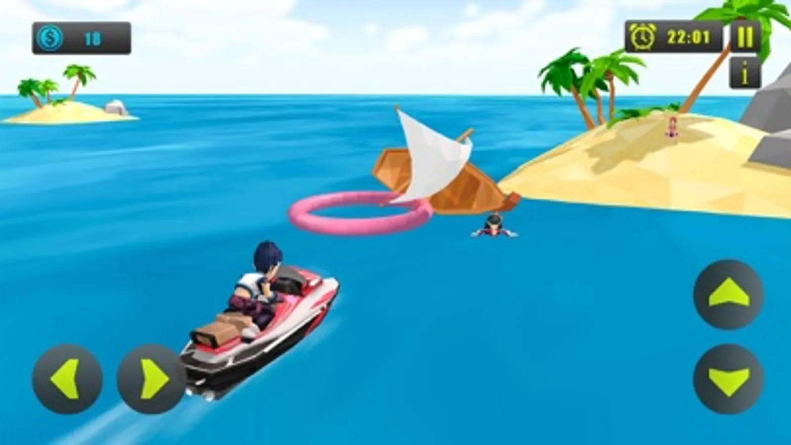 Embark on a water boat with an awesome jet ski driving experience performing ultimate skiing stunts to feel the summer splash. In this game you will get best experience of power boat racing with jumps and stunts using jet ski racing simulator. In this game not only you will have to become jet ski driver of speed power boat racing, kids water surfing bike, you will have to collect various achievement objects in many stunning levels of this game using your fastest surfing bike driving skills to unlock other water boats having jet ski simulator. Enjoy & drive jet ski racing- power boat wearing life jacket in water surfing bike race adventure. This game arrives with fastest water scooters which are ideal for jet ski beach rescue lifeguard driver or jet ski rider who loves to perform exciting stunts with passion.