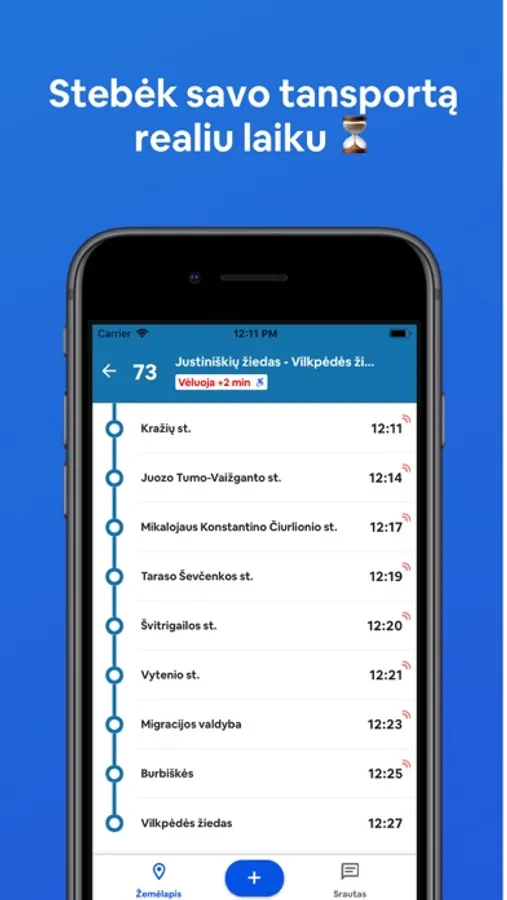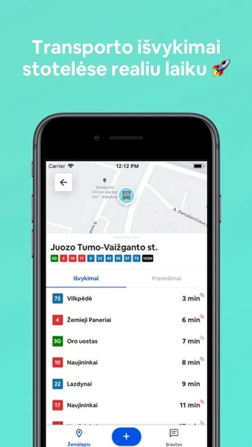 ◦ Realiu laiku matyk visus viešojo transporto išvykimus.