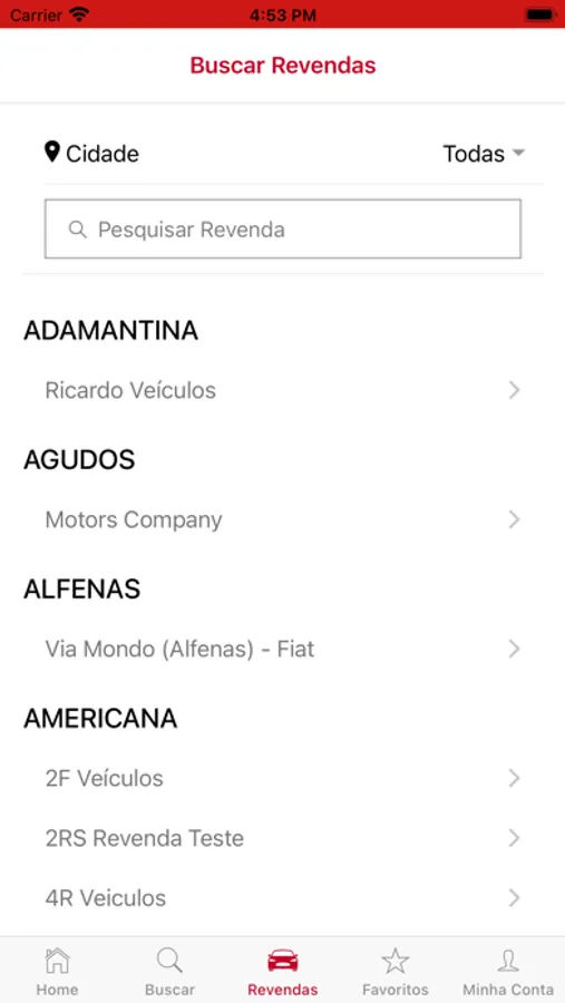 Segue abaixo as cidades atendidas com veículos de revendas, concessionárias e particulares: