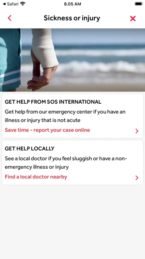 There is also an in-app possibility to contact SOS International’s emergency center by phone.