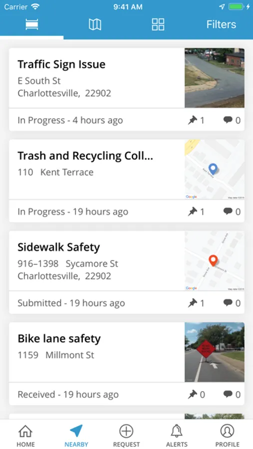 MyCville enables service requests (pothole, litter, dangerous conditions, etc.) to be submitted directly to your local government, where it will be instantly routed to the correct administrator in the appropriate department. This means your service requests will be responded to quickly and efficiently, and you’ll be notified the instant they are resolved!
