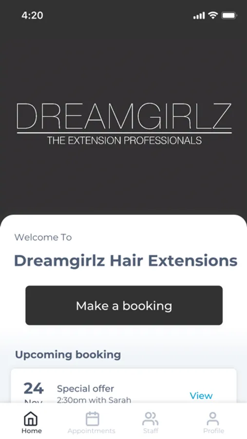 The Dreamgirlz Hair Extensions app makes booking your appointments and managing your loyalty points even easier. You're just a few taps away from feeling good and looking great!