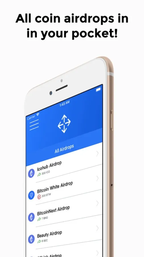 Coin Airdrop is an app that gives you the ability to track new and upcoming coin/token events for free. We give you not only airdrops, but also hard forks and bounties!