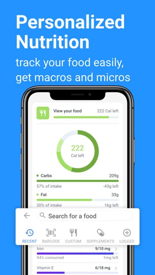Confused about what foods and serving sizes are right for you? With this revolutionary feature, you can search for any food and see if it's great for your combined goals + DNA adjusted needs. Log foods easily and find lists of personalized foods to target for specific nutrients. You can create your own custom foods and supplements, and save it for everyday use.